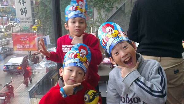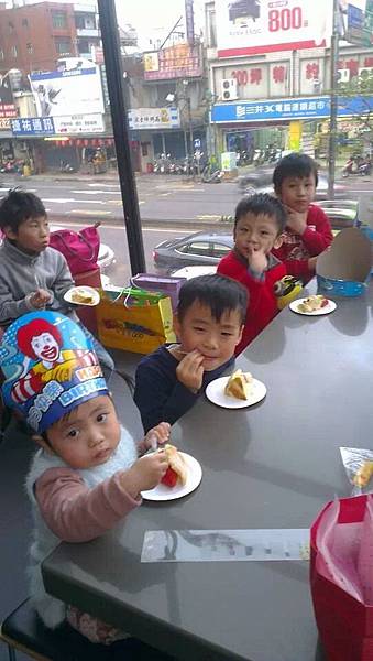 交換禮物結束後,小蜜的生日趴接著開始,麥當勞姐姐發給小朋友生日帽,